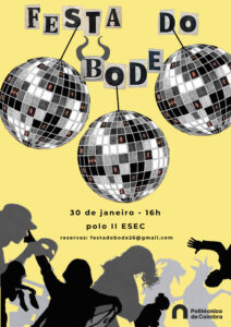 No dia 30 de janeiro 2026, pelas 16h30, no Pólo II da ESEC, realiza-se a primeira edição da Festa do Bode, evento programado pelos alunos finalistas da licenciatura em Teatro e Educação, no âmbito da unidade curricular de Projeto de Intervenção.