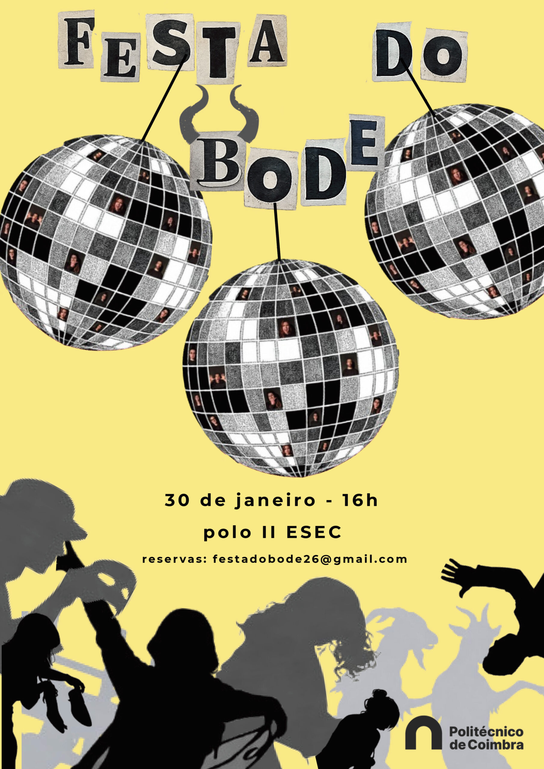 No dia 30 de janeiro 2026, pelas 16h30, no Pólo II da ESEC, realiza-se a primeira edição da Festa do Bode, evento programado pelos alunos finalistas da licenciatura em Teatro e Educação, no âmbito da unidade curricular de Projeto de Intervenção.