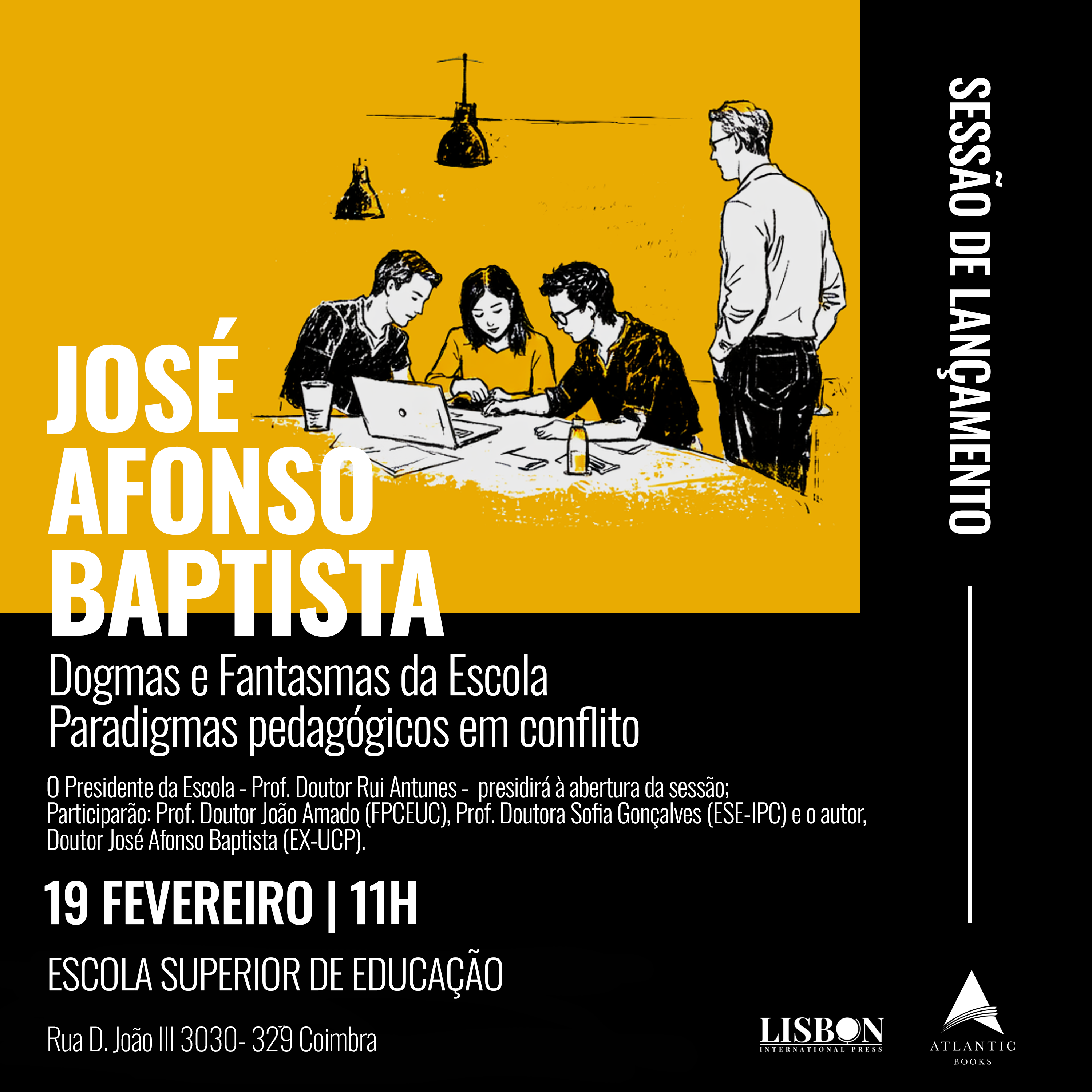 No próximo dia 19 de fevereiro 2026, quinta-feira, decorrerá no Auditório da Escola Superior de Educação de Coimbra, a mesa redonda/sessão de lançamento do livro “Dogmas e Fantasmas da Escola – Paradigmas Pedagógicas em Conflito”, da autoria de José Afonso Baptista.
